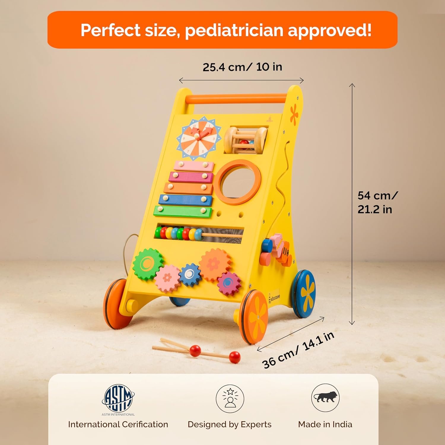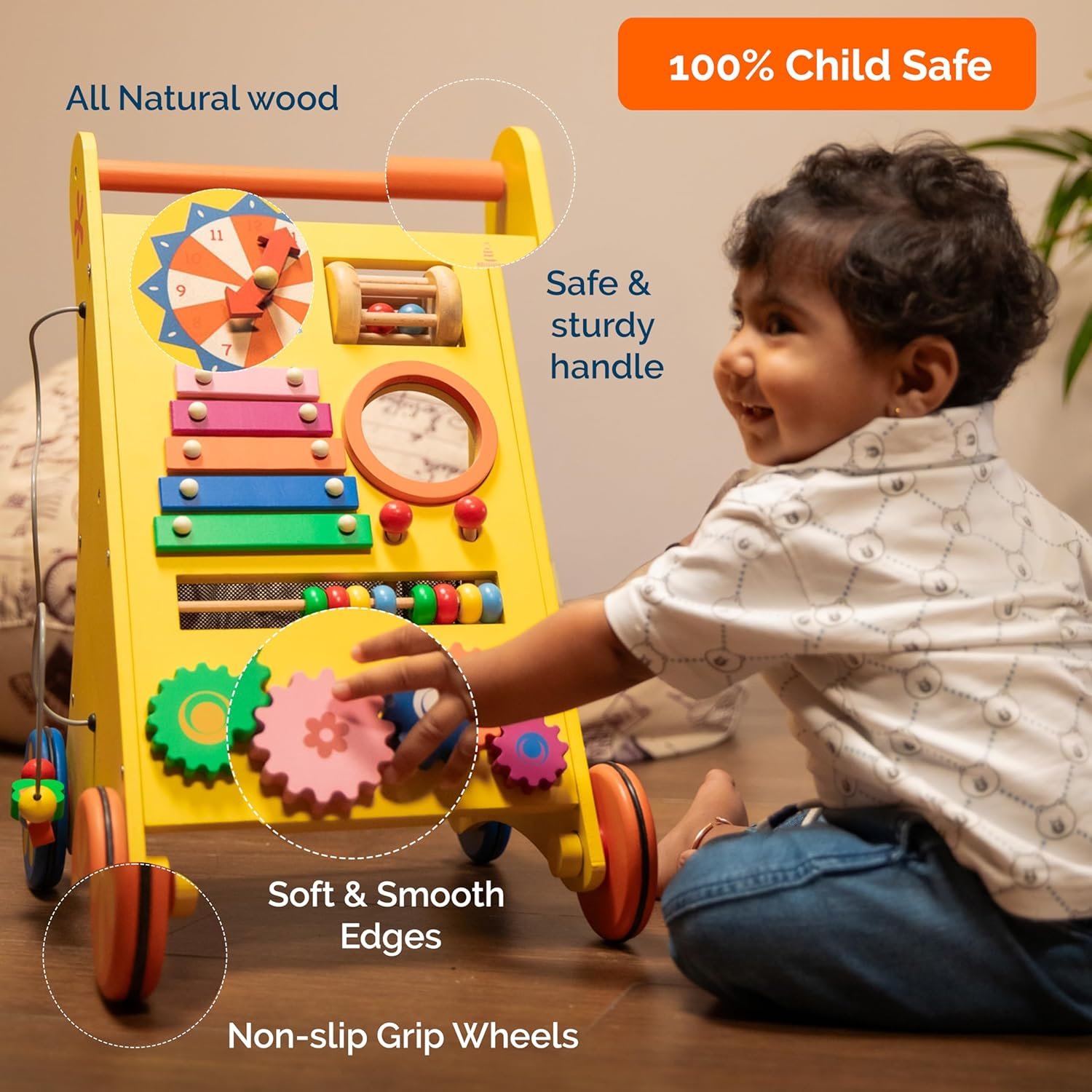 DELIGHTFUL 8-IN-1 WOODEN WALKER FOR BABIES: Looking for the perfect baby toys for 9 to 12 months or a thoughtful gift for a 1-year-old boy? This wooden 8-in-1 walker combines fun and learning with a clock, xylophone, abacus, and more—making every step magical.