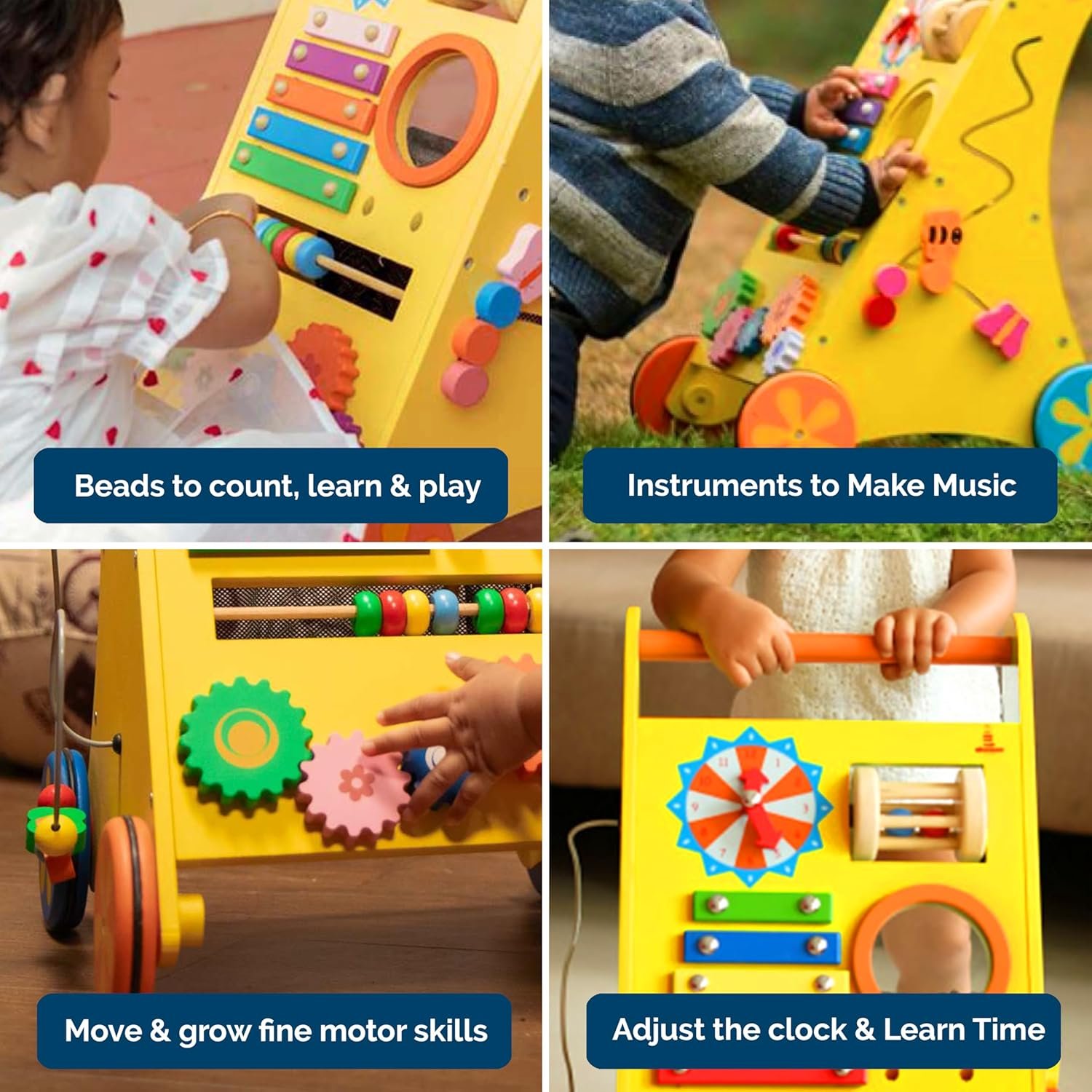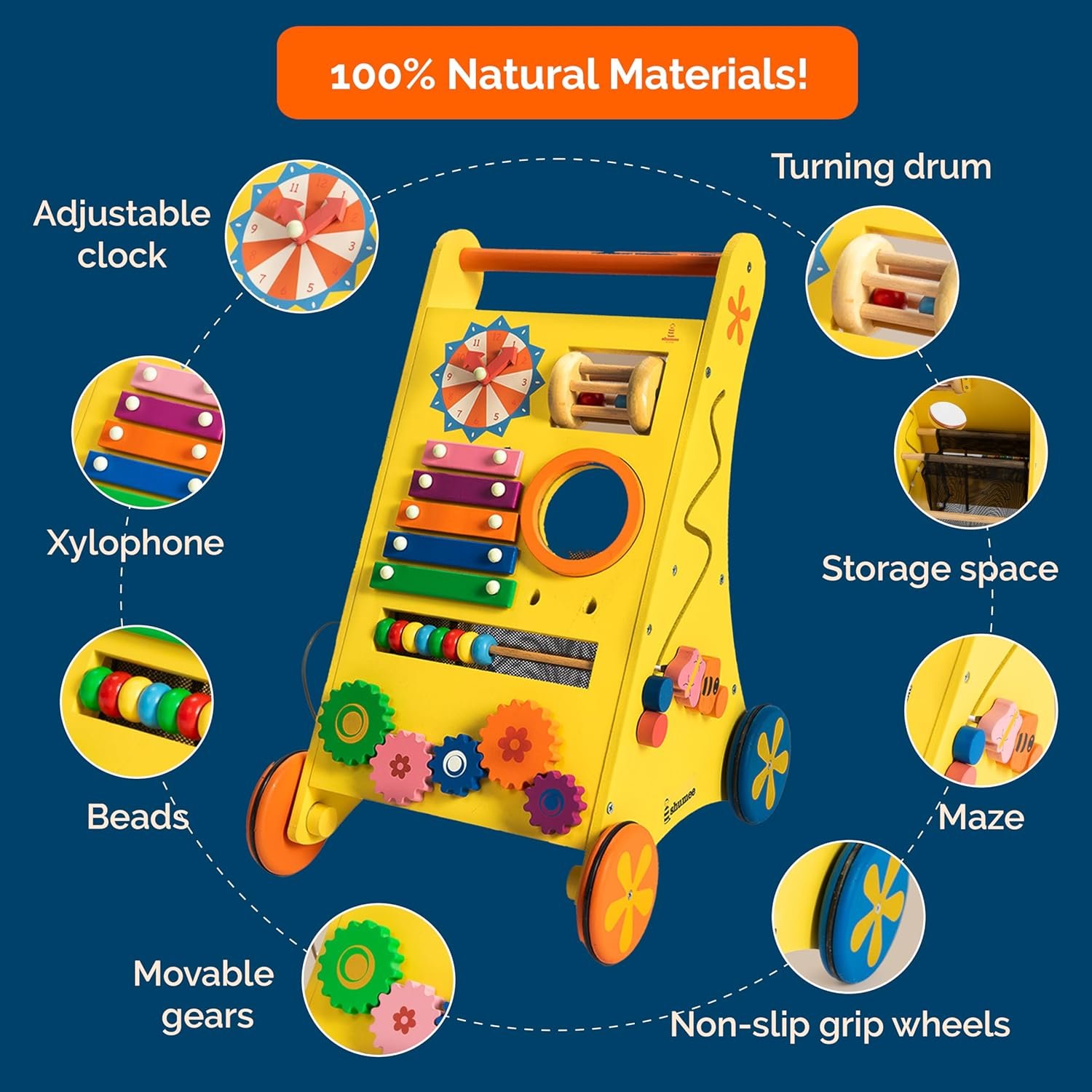 LEARN COLORS AND SHAPES WITH EASE: Choose the best wooden toys for babies 9-12 months! This multi-activity walker teaches colors and shapes with its non-toxic, child-safe design. It’s the perfect baby toy for 0 to 2 years to inspire early learning.