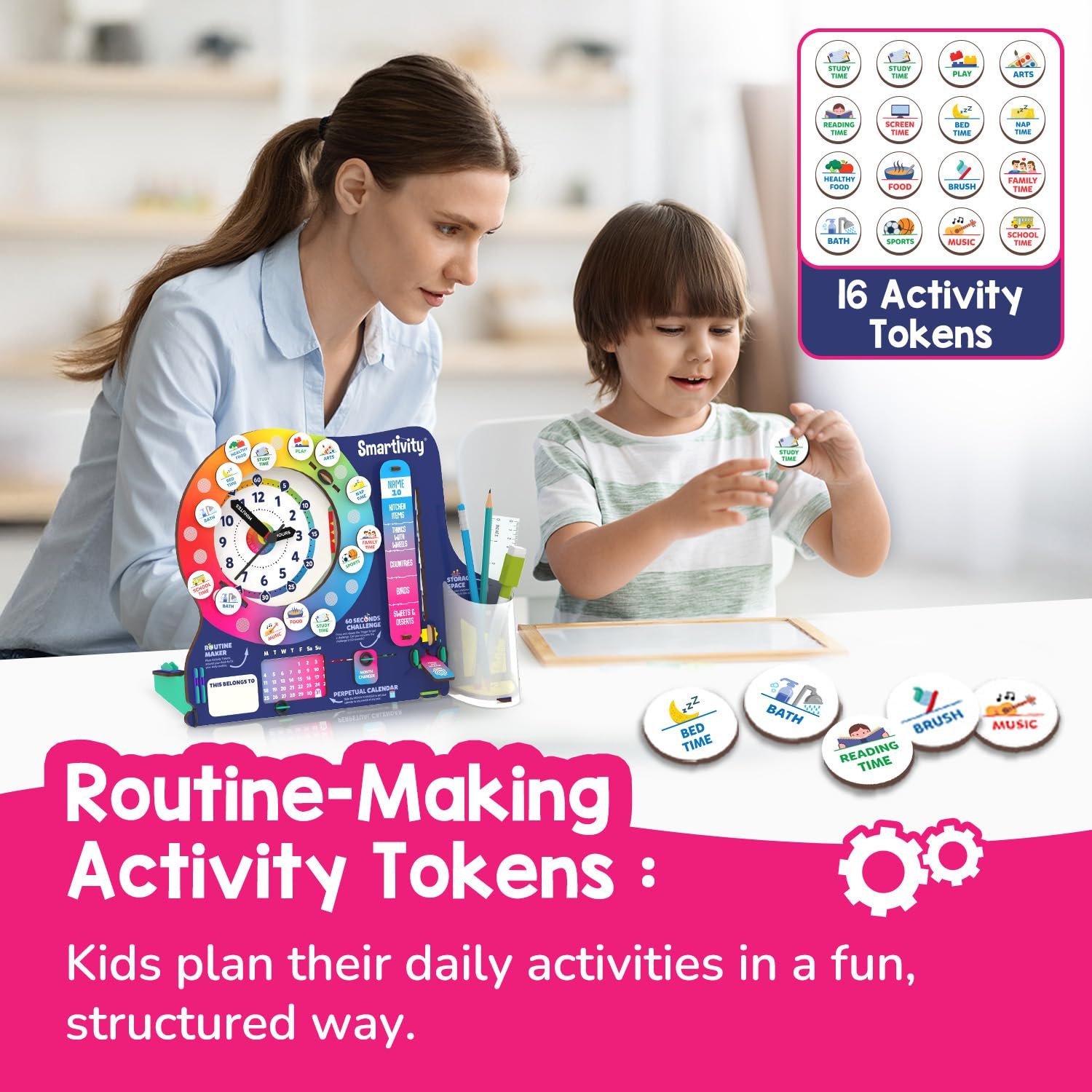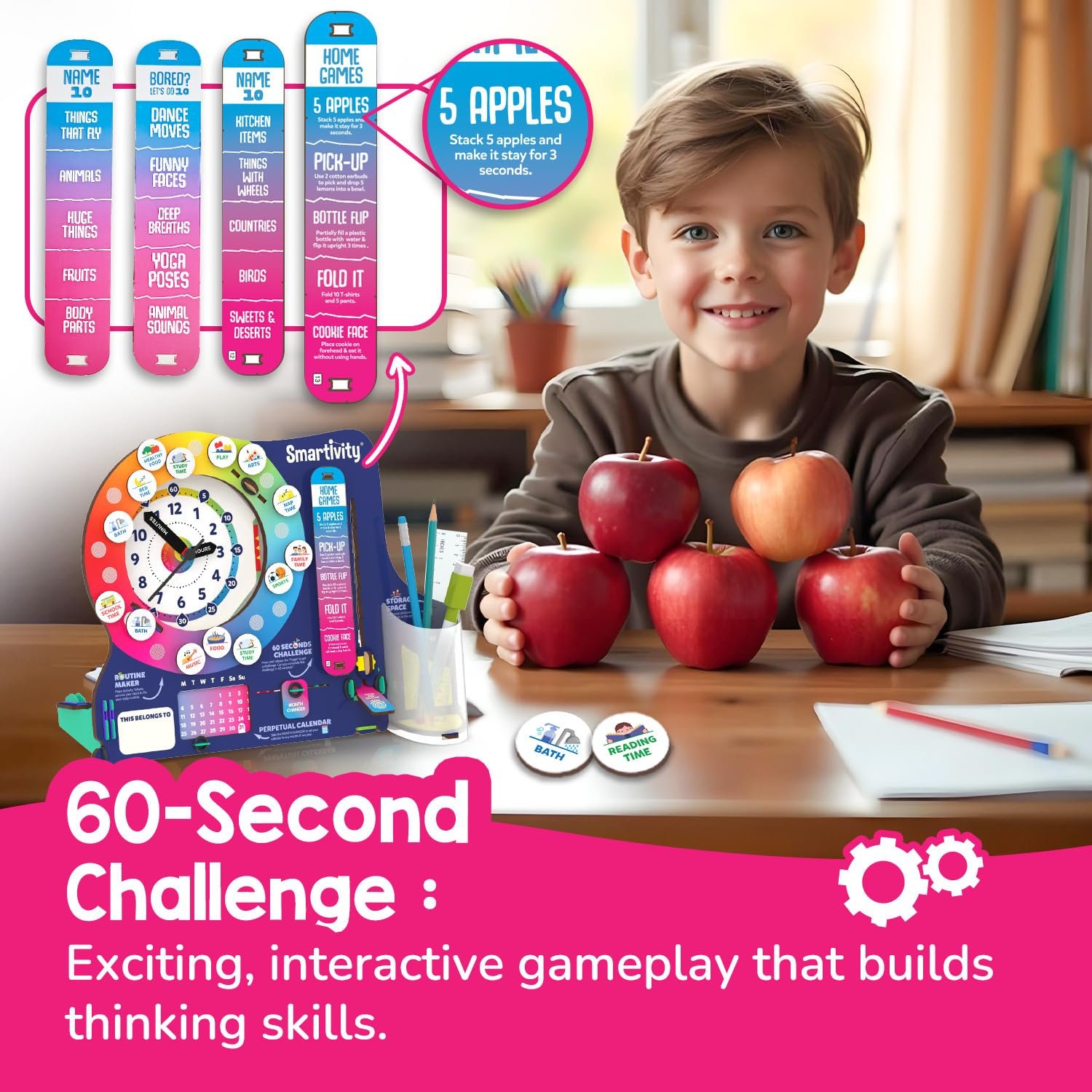 Infinity Calendar & 60-Second Challenge – Features a perpetual calendar that works for any year and a fun learning challenge to test time skills.