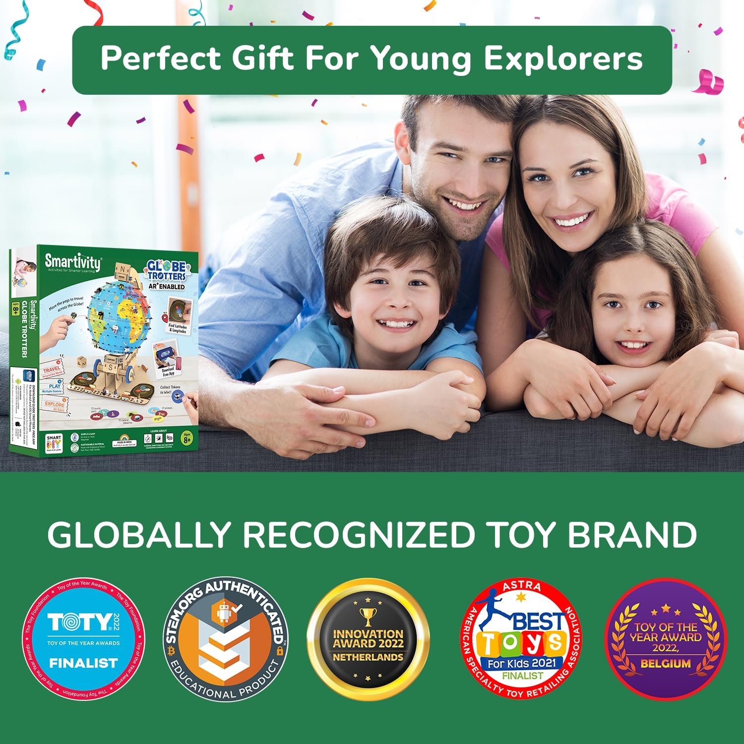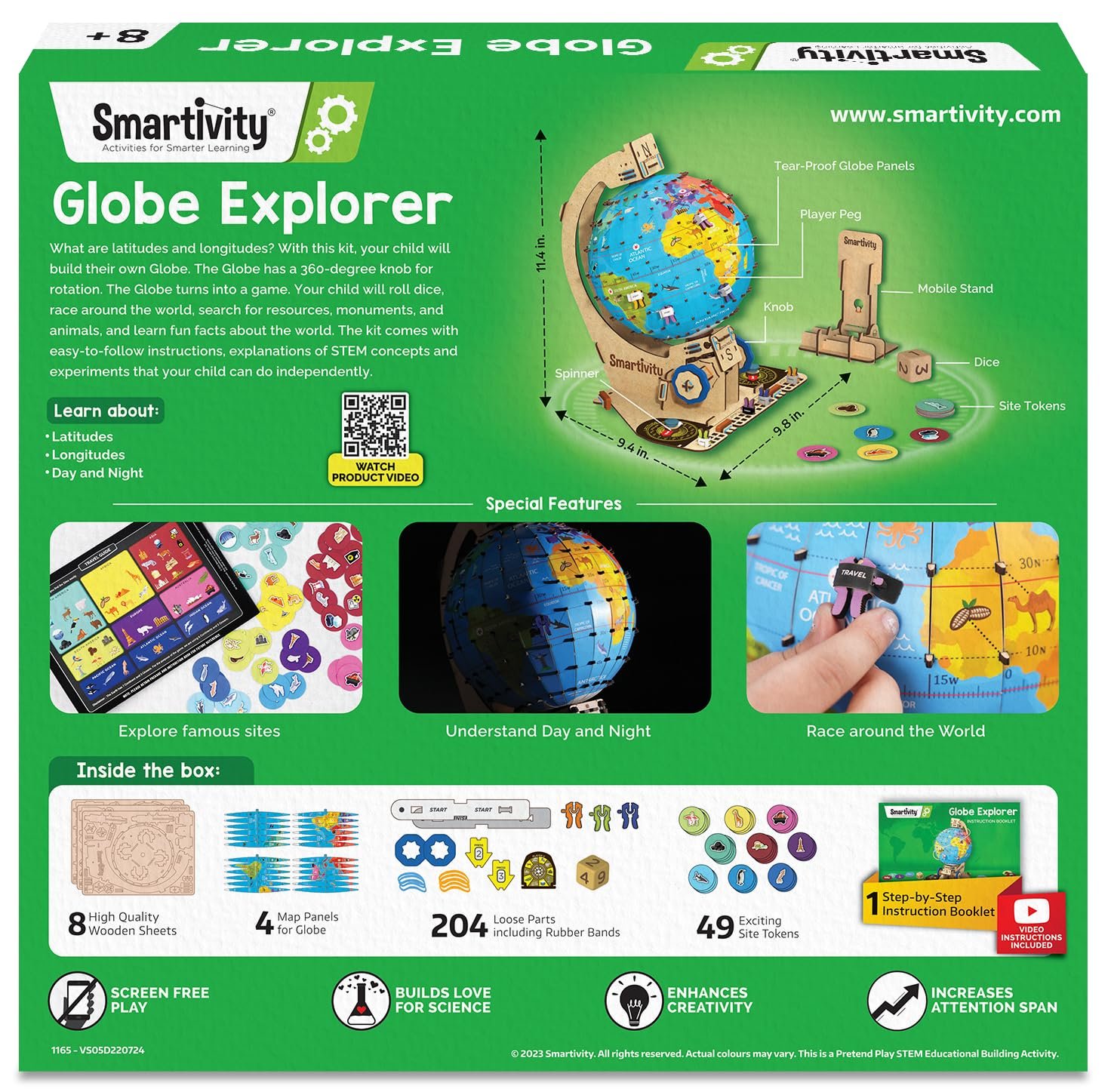 Build-It-Yourself Globe with a Mechanical Rotator Mechanism, Latitude – Longitude spinners, and 2 dice (Mode of Transport, Number Of Moves).; Screen Free Fun : Longer Constructive Activity,Multiple Gameplays,Core STEAM Learning and Superior Engagement Time Per Rupee than other DIY toys.