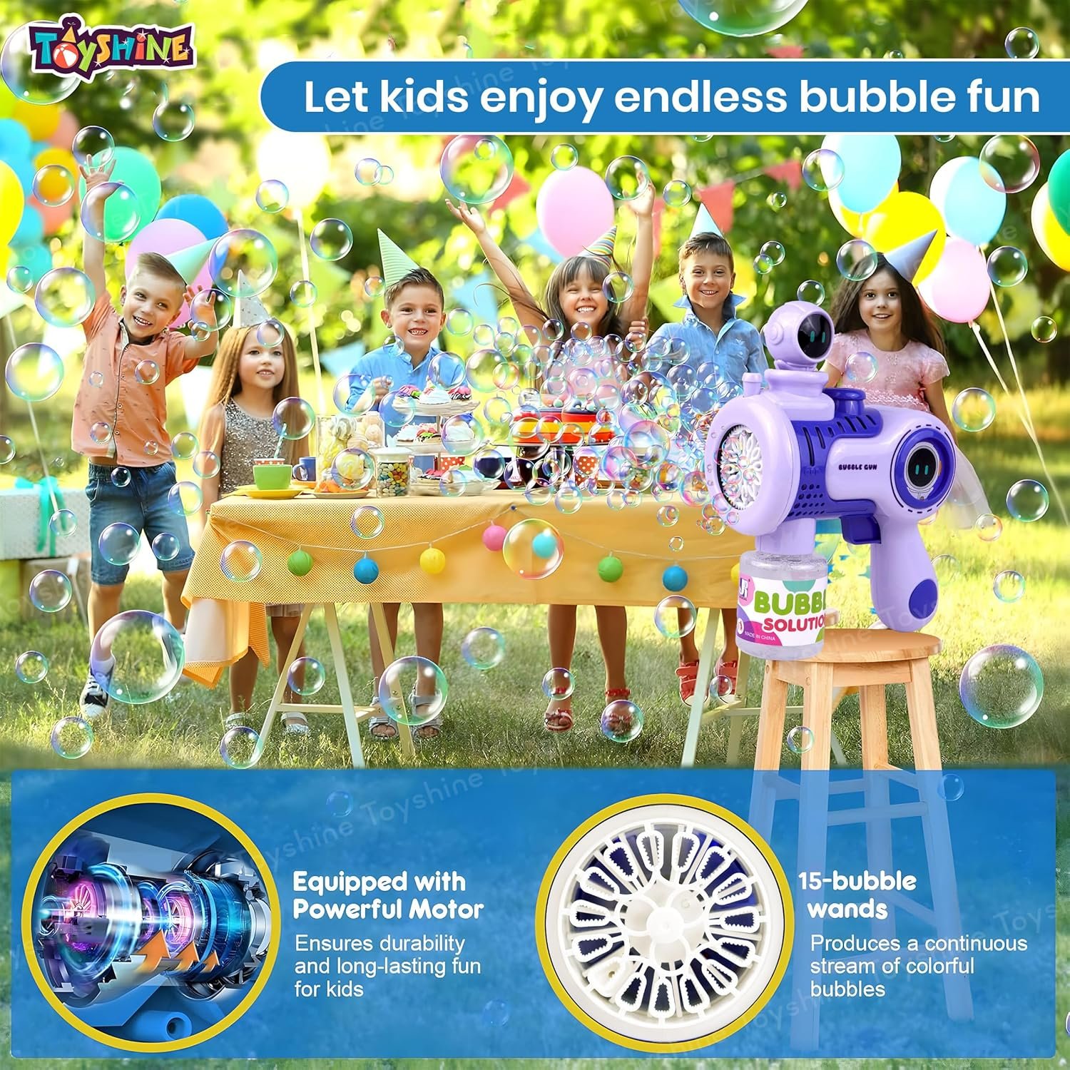 Bubble Gun Machine: The bubble gun for kids toys is designed for ease of use, typically requiring just a few simple steps: attach the reservoir with bubble solution, and pull the trigger to start blowing bubbles. This makes bubbles gun for kids suitable for young children to operate.