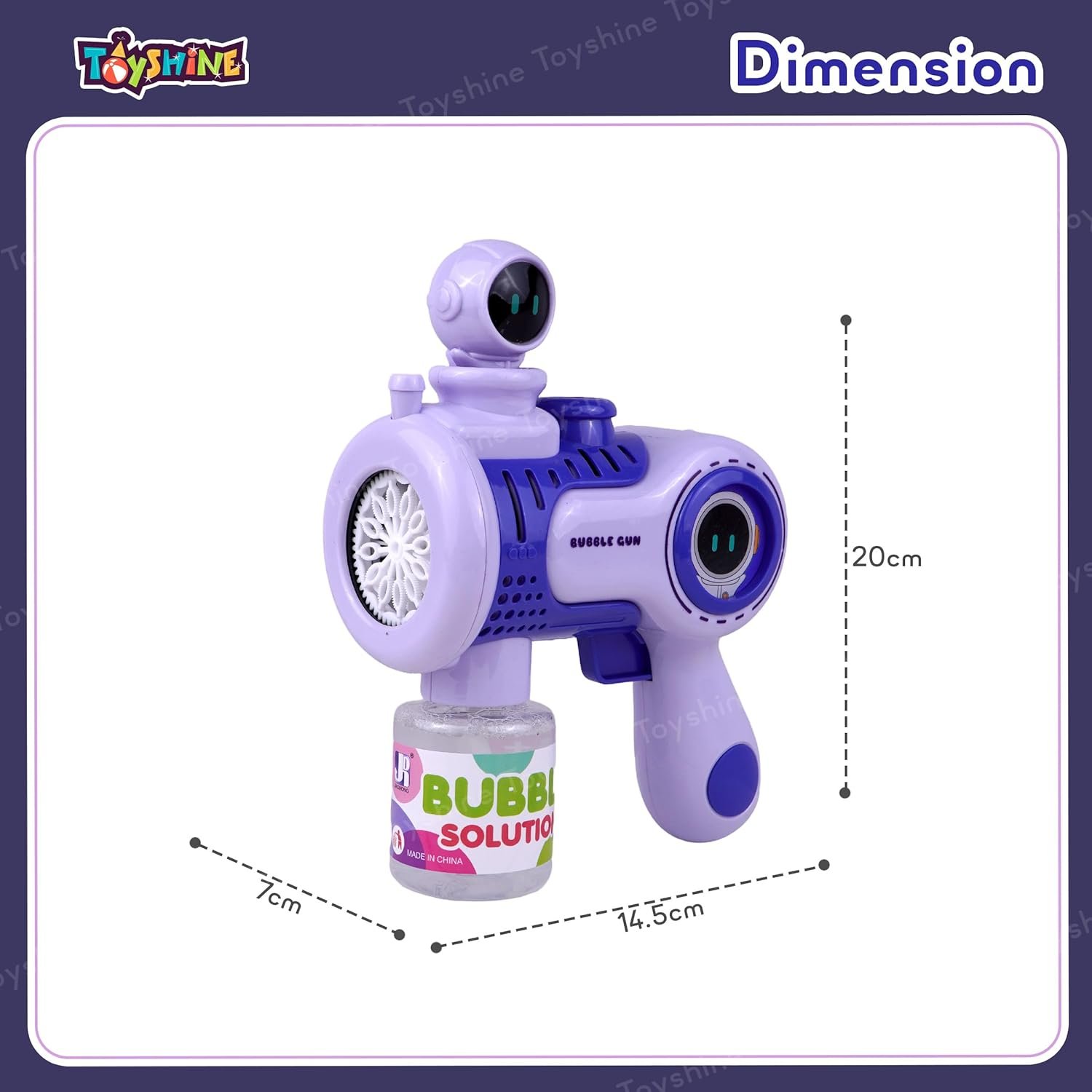 Package Content: This pack includes an astronaut-themed bubble blower gun. It further includes a bubble solution reservoir. This bubble gun for kids is a fun, interactive, and entertaining toy that can provide hours of outdoor (or indoor) amusement for children and adults alike.