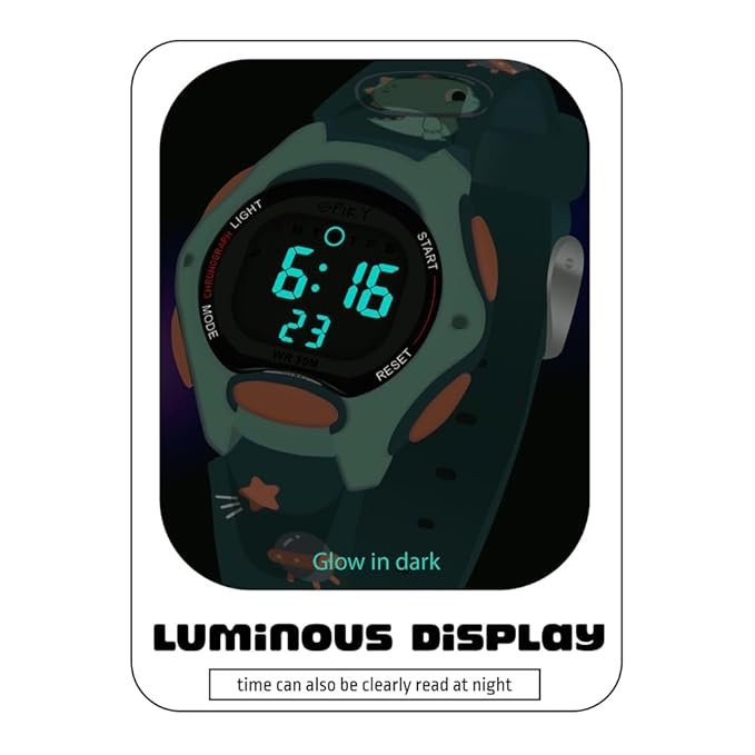 [Luminous light] A must-have feature for every active kid – this digital kids wristwatch features a bright, luminous light that is easy to read in the dark. Perfect for outdoor adventures.