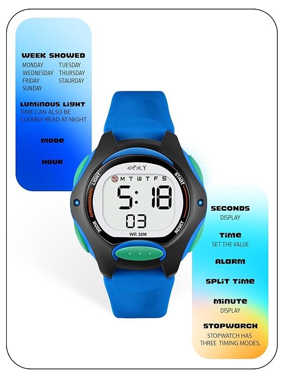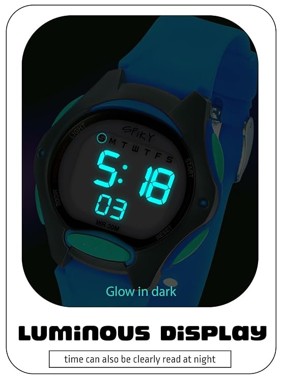 [30 M Waterproof Resistant] Make sure your child’s Spiky Digital Kids Timepiece won’t get damaged by accidental water exposure! This watch is waterproof up to 30 meters.