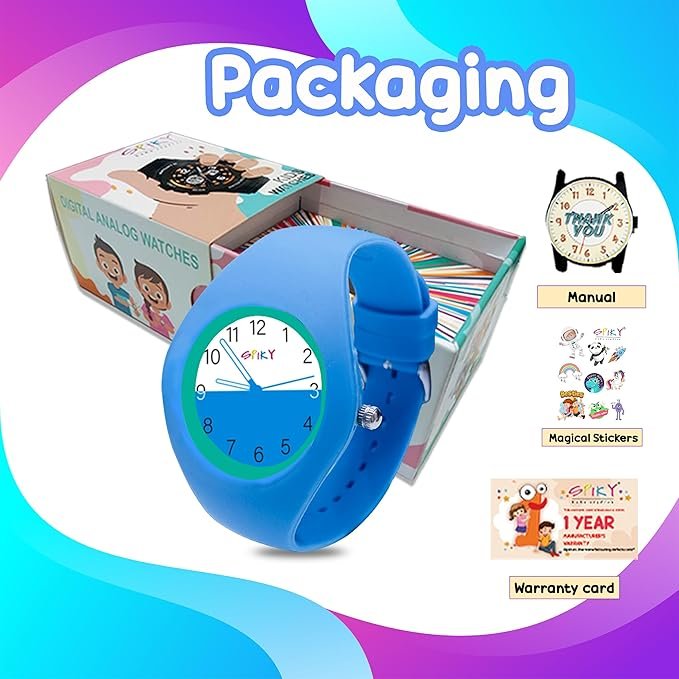 Introducing the Spiky Kids Watch for your little ones! Our kids’ analog wristwatch is designed for both boys and girls aged 3-14 years. Round shape with stylish printed strap, Unbreakable silicon strap for comfort and durability, Lightweight design for easy wear, Water-resistant for added protection. Make time-telling fun and fashionable for your kids with this adorable and durable watch! Best Birthday Gift for Kids.