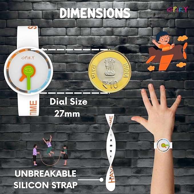 Spiky Round Analog Watch for Kids | Stylish Typography & Elegant | Casual Wear | 30M Water Resistant|Unbreakable Silicone Strap | Best Birthday Gift for Boys and Girls | Suitable for 2 to 12 years – Multicolor