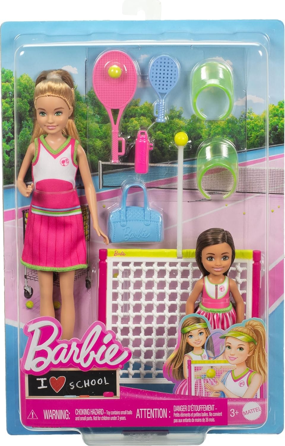 The Stacie & Chelsea Tennis playset includes 2 dolls, a net and 5+ accessories to serve up fun!