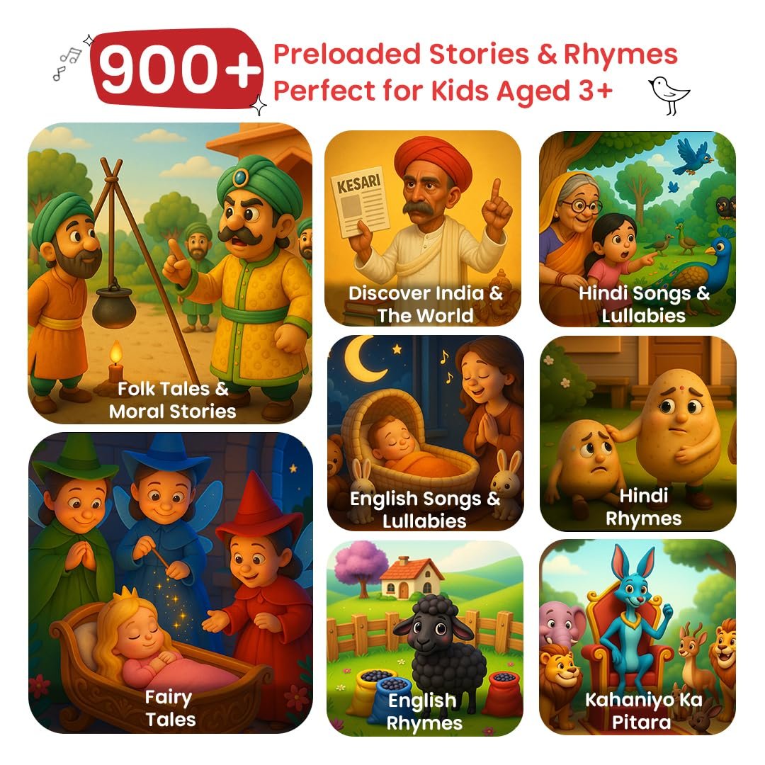 ๐๐ซ๐๐๐ฌ๐ฎ๐ซ๐ ๐๐ซ๐จ๐ฏ๐ ๐๐จ๐ซ ๐๐ฎ๐ซ๐ข๐จ๐ฎ๐ฌ ๐๐ข๐ง๐๐ฌ: Preloaded with 900+ stories, rhymes and lullabies in English and Hindi, Rabbito supports language development, nurtures young minds, and entertains kids aged 2โ10 years. From classic fairy tales to moral lessons, folk tales to fun rhymes, every audio moment is age-appropriate and thoughtfully curated to inspire learning, emotional growth, and teach valuable life lessons.