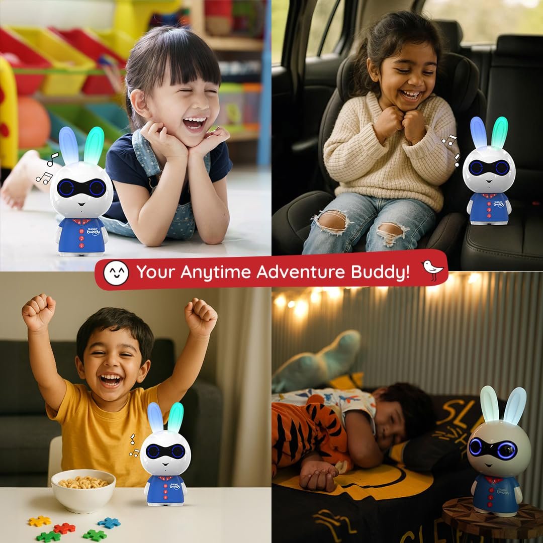 ๐๐๐ซ๐๐๐๐ญ ๐๐จ๐ซ ๐๐ฏ๐๐ซ๐ฒ ๐๐จ๐ฆ๐๐ง๐ญ: Rabbito seamlessly integrates into your childโs daily routine, adding joy to bedtime, mealtime, travel, and playtime. Whether itโs calming them to sleep with soothing lullabies, making mealtime fun with interactive rhymes, or keeping them entertained on the go, Rabbito is the perfect companion for every activity. Its immersive audio experience ensures it’s ideal for both active listening and quiet moments, making it a versatile, must-have for every family.