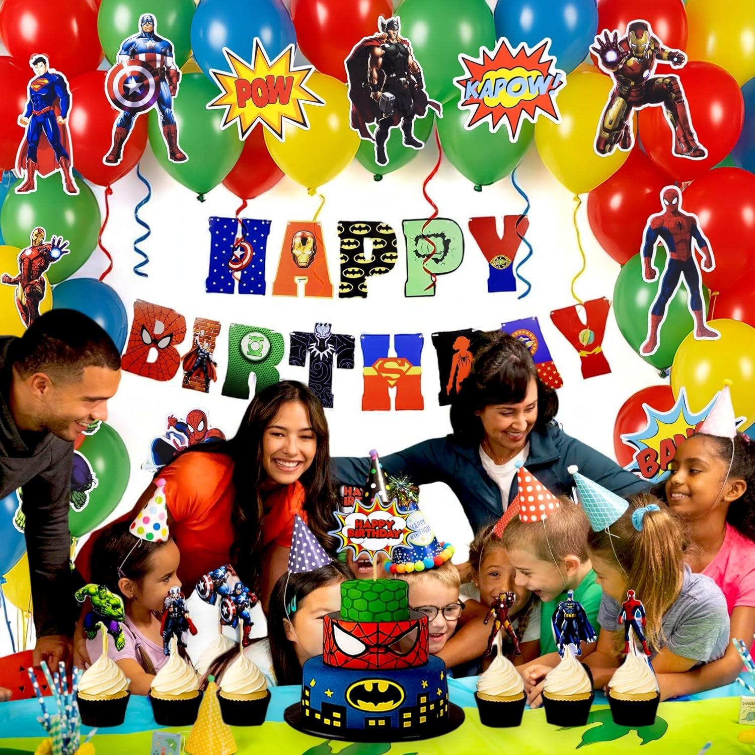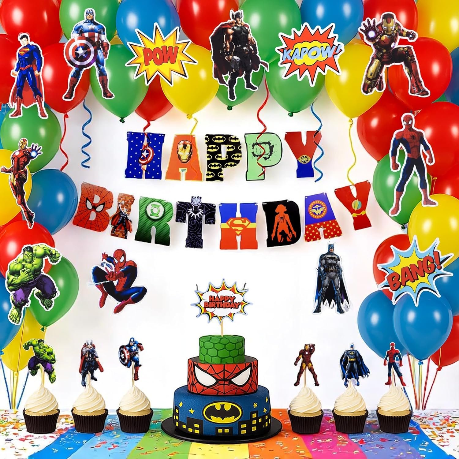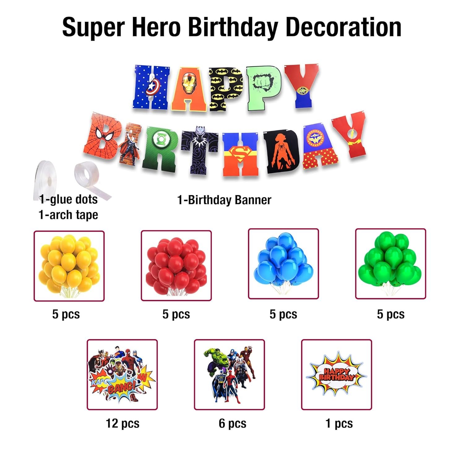 WHY CHOOSE US? ✔ All-in-one decoration kit ✔ Bright, colorful superhero designs ✔ Kid-friendly materials ✔ Makes party planning easy and fun!