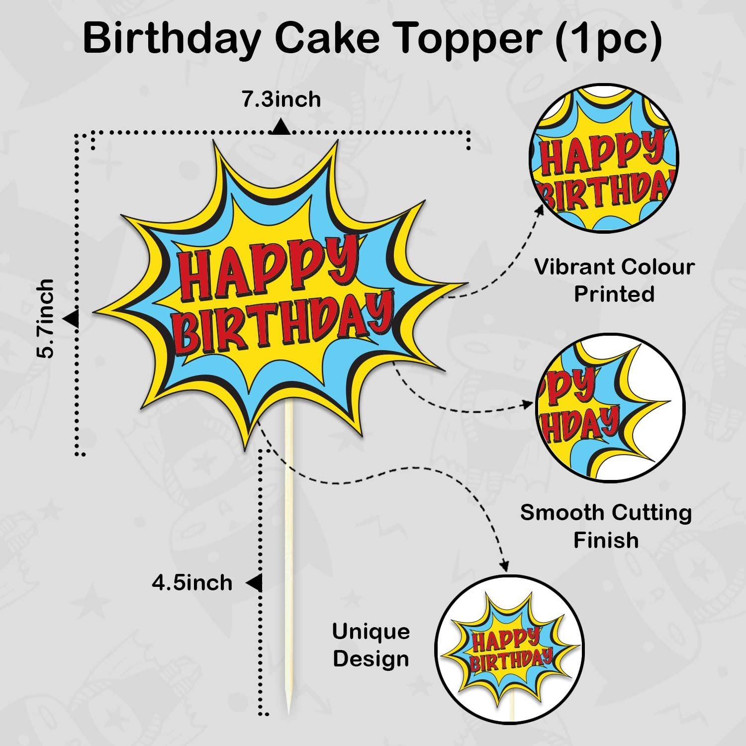 PERFECT SUPERHERO BIRTHDAY PARTY KIT : Make your child’s birthday unforgettable with our all-in-one superhero party decoration set! Featuring a colorful Happy Birthday banner, multicolor balloons, swirls, and fun cake and cupcake toppers – everything you need to create a fun and heroic party atmosphere.
