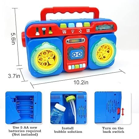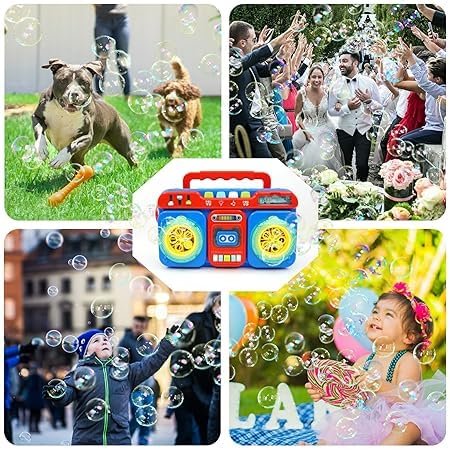 Flashing Light and Music:-Our Bubble Machine with funny radio stylingm, Colorful Flashing Light and Music,Feature with continuous bubbles, Toddles and children need colorful Light and music to add to the fun of playing with bubbles. This kids toys→bubbles blower is a perfect gift for kids !