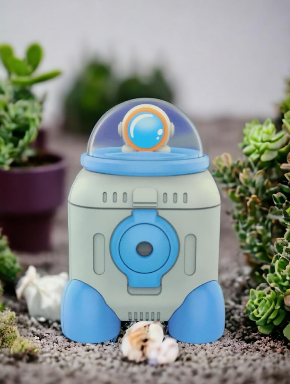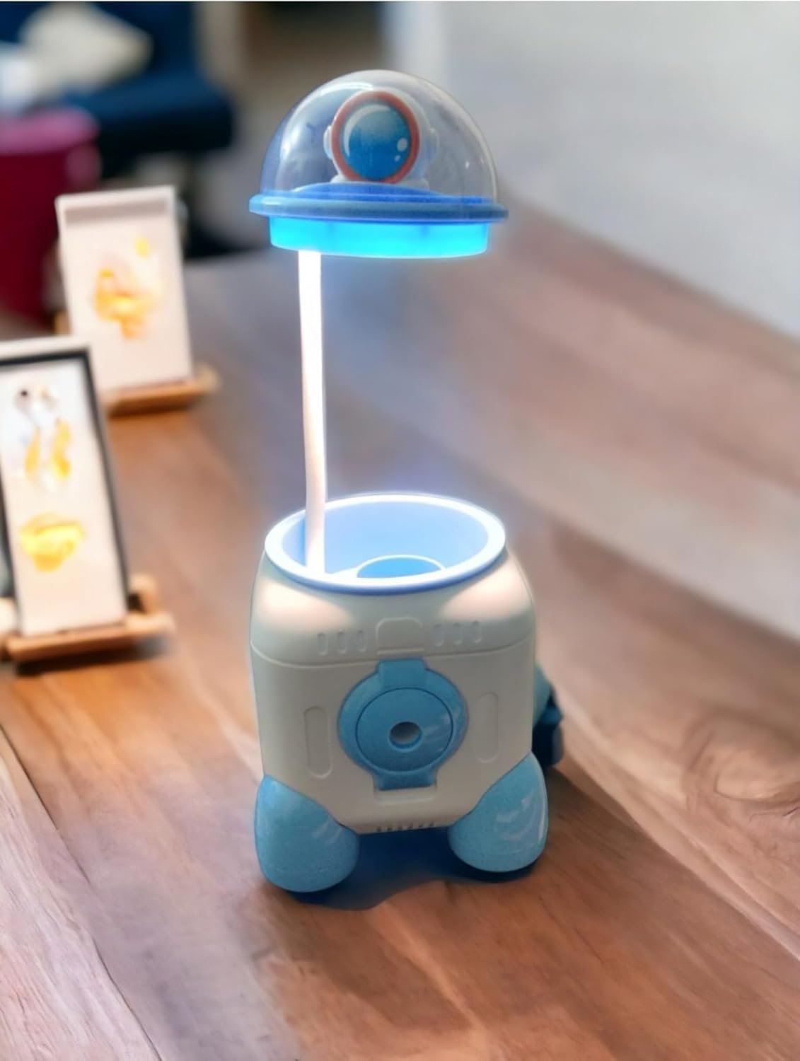 Introducing a delightful robot-themed pencil sharpener comes with a lamp and a pen/pencil stand that brings fun to every writing session! This charming sharpener features a unique design with a mint-green body, sky-blue accents, and an adorable transparent dome on top. The sturdy construction ensures durability for daily use, while its compact size makes it perfect for children’s desks or school bags. The sharpener’s wide base provides excellent stability, and its spacious shavings compartment means less frequent emptying. The clever robot design, complete with cute feet and a distinctive centre eye, transforms a basic school supply into an engaging desk accessory that children will love to use. The ergonomic design makes it easy for little hands to operate, encouraging independence in maintaining their writing tools. It’s an ideal choice for home, school, or as a thoughtful gift for young students who appreciate playful stationery items.