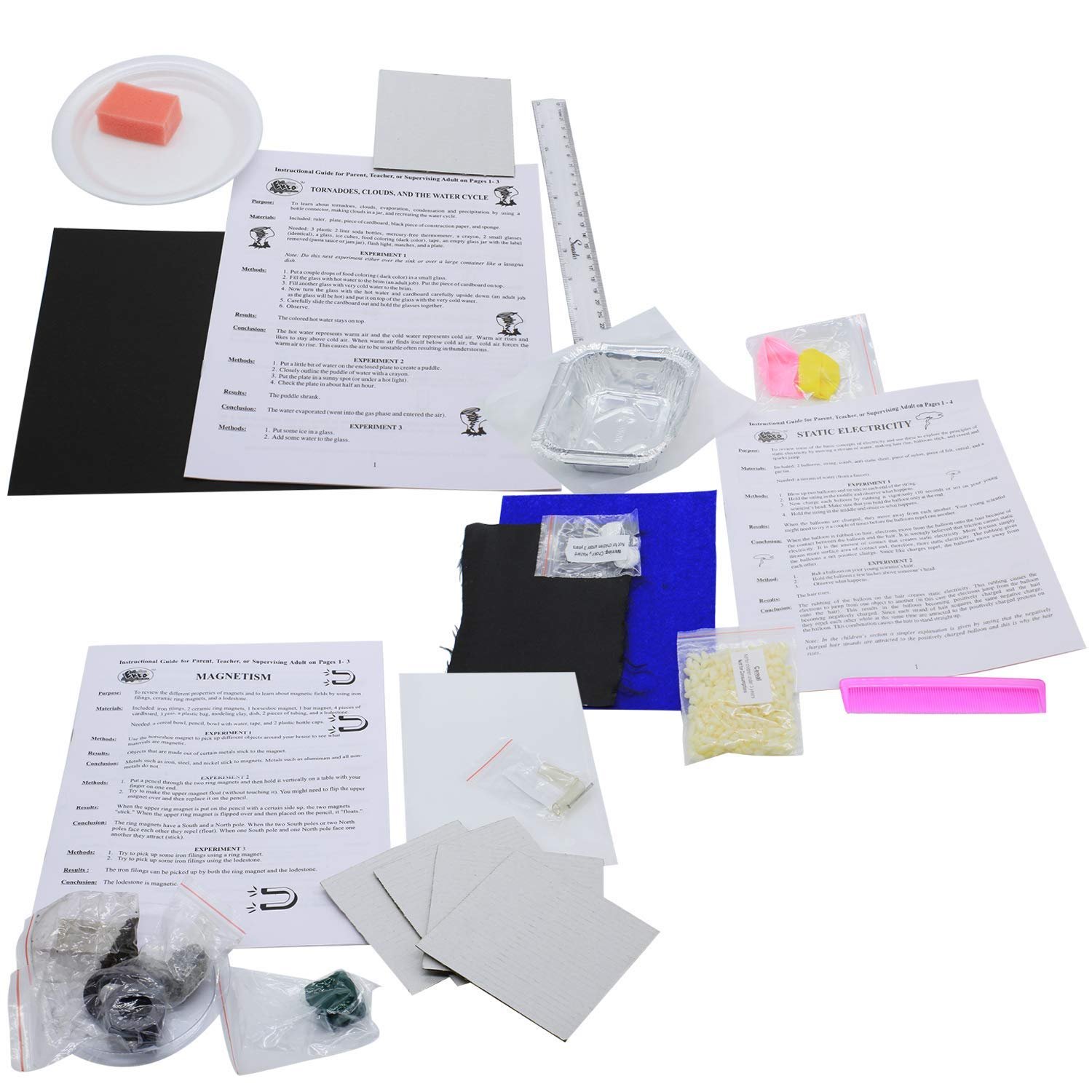 3 Science Experiments complete kits Magnetism, Statis Electricity & Tornadoes, Clouds, and water cycle in only 1 kit.