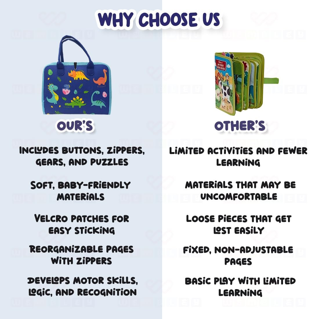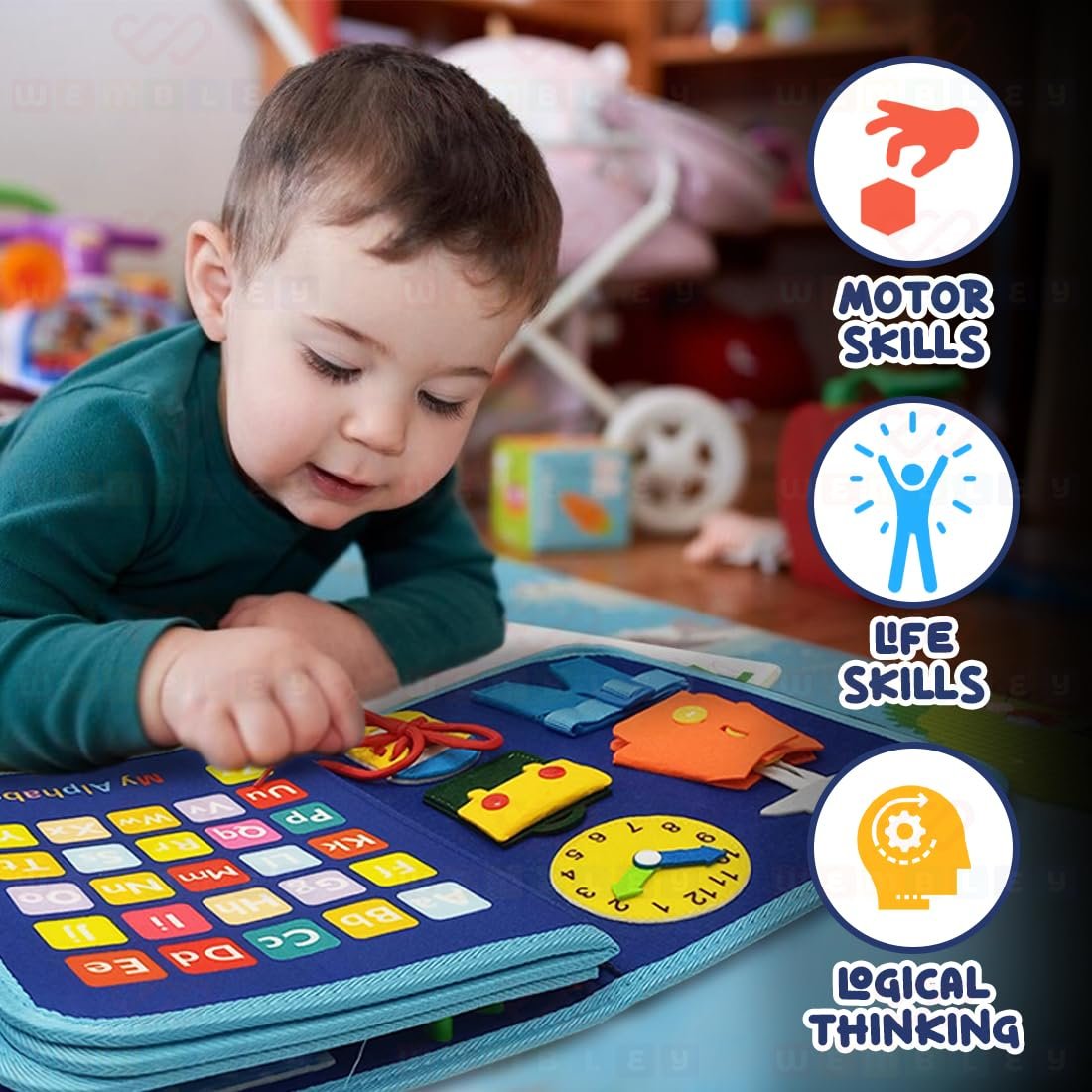 - INTERACTIVE LEARNING TOY: The toddler busy binder features zippers, buckles, laces, buttons, and Velcro, helping kids develop dressing skills independently. The Velcro sticker book improves fine motor skills, hand-eye coordination, and logical thinking while keeping them engaged in a fun, hands-on experience.