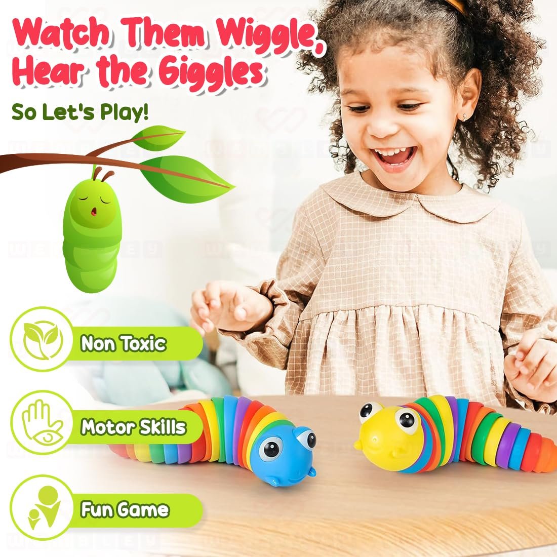 UNIQUE & EYE-CATCHING TOY: Designed in a cute caterpillar shape, the unique toy captures attention with its bright colors and playful movement. Whether used as a toy or displayed on a desk, these baby toys add a touch of fun to everyday life. The cheerful look makes it exciting to play with or gift to others.