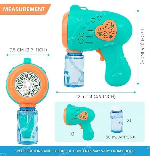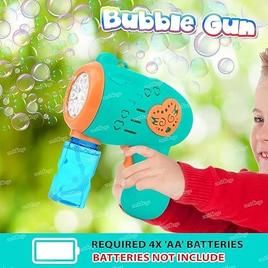 π BATTERY-POWERED FOR EASE: No need to blow bubbles manually! This bubble gun runs on 4 AA batteries (not included), ensuring effortless operation for kids. Simply press the trigger and watch as a flurry of bubbles fills the air, making it a perfect toy for outdoor fun and party activities.
