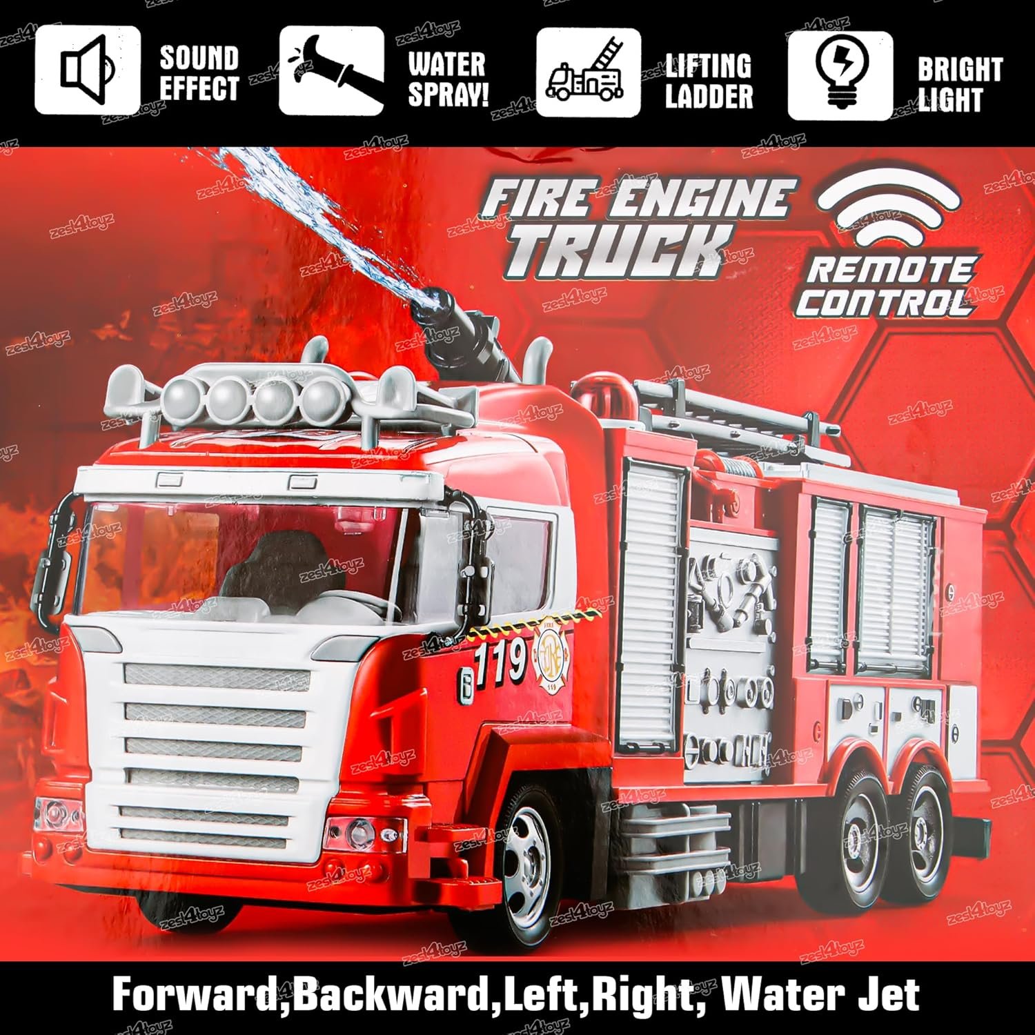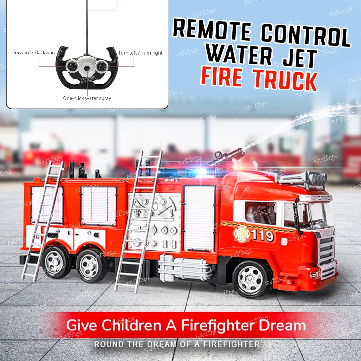 🎮 REMOTE CONTROLLED ACTION: Comes with a user-friendly remote to move the truck forward, backward, left, and right. Includes a water spray button for realistic action and flashing lights for thrilling play in low-light settings.